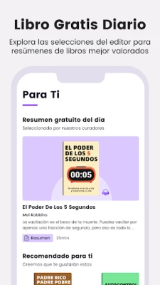 La flexibilidad es clave en tu camino hacia el crecimiento, y Booksnap lo entiende perfectamente. Disfruta de la libertad de elegir cómo y cuándo aprender, alternando entre el formato de texto conciso y las fluidas versiones en audiolibro. Imagina asimilar nuevos conceptos mientras conduces, haces ejercicio o simplemente te relajas, liberando tus manos para cualquier actividad. Además, Booksnap se convierte en tu curador personal, presentándote listas de lectura adaptadas a tus intereses y objetivos, descubriendo nuevas perspectivas con una sugerencia diaria y ofreciéndote la posibilidad de solicitar resúmenes de cualquier título que desees explorar, asegurando que tu curiosidad nunca encuentre límites. Puedes incluso disfrutar de estos insights sin conexión, para que el aprendizaje nunca se detenga.