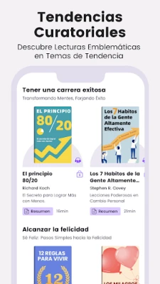 Con Booksnap, cada sesión de aprendizaje te impulsa hacia una versión más capaz y consciente de ti mismo. Mejora tus habilidades profesionales con las últimas tendencias en carrera y marketing, cultiva tu liderazgo y productividad a través de lecturas inspiradoras, o explora nuevas dimensiones del conocimiento en campos como la economía, la ciencia y la historia. Aquí encontrarás la chispa para avivar tus relaciones y transformar tu estilo de vida. Booksnap no solo te ofrece conocimiento; te equipa con las herramientas y la motivación para superar obstáculos y alcanzar tus metas, mostrando un camino claro hacia el éxito personal y profesional.