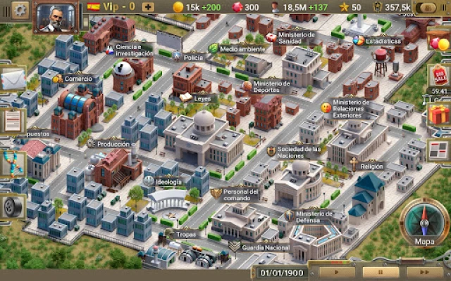 Tu influencia se extenderá más allá de tus fronteras. Cultiva relaciones diplomáticas complejas, sellando pactos de no agresión y acuerdos comerciales beneficiosos, y estableciendo embajadas que actúen como pilares de tu política exterior. No dudes en colonizar nuevos territorios, ampliando tu dominio y asegurando puntos estratégicos cruciales. Protege a tu población y tu infraestructura construyendo búnkeres fortificados y desarrollando yacimientos mineros que garanticen la seguridad ante cualquier amenaza externa. La vigilancia es constante; utiliza el espionaje y el sabotaje para desestabilizar a tus adversarios y obtener una ventaja decisiva en el tablero global.