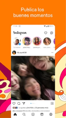 Comparte tus vivencias de manera dinámica y cercana. Mantén el hilo con tus seres queridos a través de historias instantáneas y notas que capturan el momento, desvaneciéndose al cabo de 24 horas, o crea burbujas de conversación con tus Mejores amigos para compartir sin filtros. Inmortaliza recuerdos de aventuras y celebraciones en tu feed, y transforma tus experiencias en cautivadoras secuencias con los reels de Instagram, donde la música, los efectos y los vídeos cortos se fusionan. Personaliza cada pieza de contenido con plantillas exclusivas, sonidos vibrantes, pegatinas y filtros que dan un toque único a tu expresión.