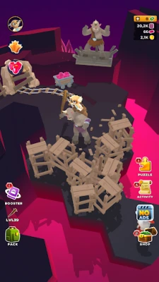 Armado inicialmente con un simple pico y una voluntad inquebrantable, tu "hombrecito naranja" iniciará una transformación monumental. Descubre y recolecta hasta 15 recursos únicos, desde minerales preciosos hasta madera vital, que te permitirán modelar tu mundo con sabiduría infinita. Mejora tu herramienta principal a través de ocho niveles, multiplicando tu eficiencia para minar oro, excavar profundidades o combatir a los adversarios. A medida que tu civilización prospere, desbloquea forjas y talleres para fabricar un arsenal de ocho armas adicionales, incluyendo hachas mejorables y la legendaria espada Excálibur, que infundirán respeto en los corazones de tus enemigos.
